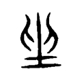 坐,停下休息。字形采用“土”和省略了“田”的“畱”会义。土,是止息的地方。此与“留”是同一个意思。,这是古文写法的 “坐”字。