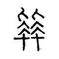 〔拜〕字造字法是会意。从两手,从下。《说文》古文上象两手,丅为“下”的古体。《说文》引 扬雄说:“拜从两手下。”表示双手作揖,或下拜。隶书将“丅”( 下 )并入右边的“手”之下而成为“拜”,一直沿用至今。本义是古代表示敬意的一种礼节。两手合于胸前,头低到手。