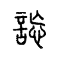 音《廣韻》、《集韻》𡘋下闞切,酣去聲。《說文》:誕也。《廣韻》誇誕,引《東觀漢記》雖誇譀猶令人熱。