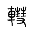 附注《說文新證》:「金文象車軸兩端有軎之形,強運開引吳大澂說謂『此篆正象雙輪貫軸之形』。小篆省一輪。初文為象形,說文或體為形聲。」