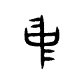 之省。篆文承自戰國文字,古文承自而曲其豎筆,籀文承自金文二例而旗斿略有變動。隸書前例承自金文初例;二例承自金文首例而省;第三例承自篆文。楷書承自隸書第三例而合為一字。在六書中屬於象形。
