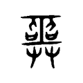 附注按:甲骨文、金文像兩玉交錯形。古代巫師以玉為靈物,故以交錯的玉形代表巫祝的巫。