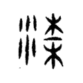 附注徐鍇繫傳:「(古文)从兩木,一,梁之中橫象,从水。指事。」