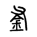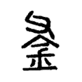 〔釜〕字造字法是形声。从金省,父声。本义是古炊器。敛口圜底,或有二耳。其用于鬲,置于灶,上置甑以蒸煮。盛行于汉代。有铁制的,也有铜或陶制的。