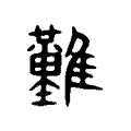 〔難〕字的汉语字典解释:㈠ [nán] ⑴ 鳥名。也作“𪅀”。《廣韻•寒韻》:“難,《説文》作𪇠,鳥也。”⑵ 困難;不易。《玉篇•隹部》:“難,不易之稱。”《廣韻•寒韻》:“難,艱也,不易稱也。”⑶ 使困難;使感到困難。《史記•樗里子甘茂列傳》:“應侯欲攻趙,武安君難之,去咸陽七里而立死於杜郵。”《左傳•哀公十二年》:“今吴不行禮衛,而藩其君舍以難之。”⑷ 厭惡;忌恨。《戰國策•中山策》:“司馬憙三相中山,陰簡難之。”⑸ 不能;不好。如:難聽;難吃;難看。《戰國策•中山策》:“且張登之為人也,善以微計薦中山之君久矣,難信以為利。”⑹ 通“戁”。➊恭敬。《禮記•儒行》:“儒有居處齊難,其坐起恭敬。”➋惶恐。《荀子•君道》:“故君子恭而不難,敬而不鞏。”⑺ 方言。如今,現在。《海上花列傳》第四回:“王老爺難也有點勿老實哉!陸裏去想得來好主意,説來噪城裏!”⑻ 姓。《廣韻•寒韻》:“難,姓。百濟人。”㈡ [nàn] ⑴ 災難;禍患。《廣韻•翰韻》:“難,患也。”《增韻•翰韻》:“難,阨也,憂也。”⑵ 畏懼;擔心。《釋名•釋言語》:“難,憚也,人所忌憚也。”⑶ 抵擋;拒斥。《集韻•换韻》:“難,阻也。”⑷ 兵難,指反抗或叛亂。《漢書•項籍傳》:“天下初發難。”⑸ 怨仇;仇敵。《周禮•春官•典瑞》:“穀圭以和難,以聘女。”⑹ 責難;詰問。《孟子•離婁下》:“如此,則與禽獸奚擇哉?於禽獸又何難焉?⑺ 辯說;爭論。《吕氏春秋•樂成》:“令將軍視之,書盡難攻中山之事也。”㈢ [nuó] ⑴ 茂盛貌。《詩•小雅•隰桑》:“隰桑有阿,其葉有難。”⑵ 驅逐鬼疫。後作“儺”。《集韻•戈韻》:“難,卻凶惡也。通作儺。”⑶ “奈何”的合聲。《左傳•昭公十年》:“忠為令德,其子弗能任,罪猶及之,難不慎也!”⑷ 語氣助詞。相當於“哪”、“呵”。宋辛棄疾《柳梢青•八難之辭》:“莫鍊丹難。黄河可塞,金可成難。休辟穀難,吸風飲露,長忍飢難。”